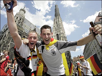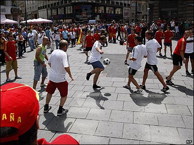 در آستانه برگزاری فینال جام ملتهای اروپا در شهر وین، طرفداران دو تیم اسپانی و آلمان صبح روز مسابقه را به شادی و تفریح گذرانده اند. مرکز تجمع اصلی طرفداران، میدان مقابل کلیسای سنت استفان در این شهر بود، هرچند در روز های اخیر کل شهر وین تحت تاثیر هجوم علاقمندان فوتبال قرار گرفته است. آنچه فضا را برای لذت بردن طرفداران مناسب تر ساخت، هوای آفتابی پایتخت اتریش بود.
