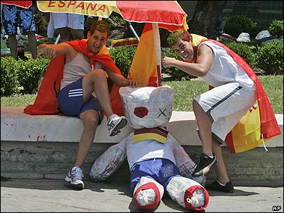 طرفداران خرافاتی تر اسپانیا به سبک ساکنان غرب آفریقا عروسکی را به عنوان نماد آلمان ساختند و لطف خود را به آن ابراز کردند!