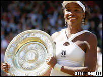 از آن گذشته در سه سال اخیر تمام فینالهای ویمبلدون و جام آزاد فرانسه بین این دو نفر بوده و در این دو جام بزرگ جهان هیچ بازیکن دیگری حتی به یک قدمی آنان نرسیده. اگر این اسمش استیلا بر تنیس جهان نیست، پس چیست؟ صربها کجا رفتند من یکی از کسانی بودم که فکر میکردم پیشرفت جوانان صرب در تنیس، جوکوویچ در میان مردان و آناایوانوویچ و یلنا یانکوویچ در میان زنان، به اضافه بالا آمدن دختران روس، خبر خوبی برای تنیس است که میتواند با ایجاد رقابت بیشتر در میان بازیکنان چهره مطلوبتری به این ورزش محبوب در جهان بدهد. اما تجربه یک سال اخیر نشان داد که امثال من کمی عجله کرده بودند. جوکوویچ پس از پیروزی در استرالیا و رسیدن به ردیف سوم رده بندی جهانی چنان هوا برش داشت که در مصاحبههایش دیگر هیچکس را قبول نداشت. اما پس از شکست در مقابل نادال در نیمه نهائی فرانسه و فینال جام آرتوا در کوئینزکلاب لندن چنان سرخورده شد که در دور دوم ویمبلدون با شکست در مقابل سفین، دمش را روی کولش گذاشت و رفت.  | | | ونوس ویلیامز توانست برای پنجمین بار قهرمان این جام عمده تنیس جهان شود |
