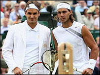 امروز روز ویلیامزها در ویمبلدون بود. ونوس خواهر بزرگتر برای اولین بار توانست خواهر کوچکتر سرینا را در فینال ویمبلدون شکست دهد و برای پنجمین بار قهرمان این جام عمده تنیس جهان شود. برخلاف آنچه هم که بدبینان و غرزنان حرفهای قبل از بازی می گفتند، مسابقه این دو خواهر بسیار گرم و پرهیجان بود. اما این پایان کار امسال آنها نیست و این دو خواهر که همچنان تشنه پیروزیاند، امشب بار دیگر به زمین مرکزی میروند تا این بار در کنار هم در فینال دوبل زنان بازی کنند. اگر پیروز شوند سومین قهرمانی آنان در دوبل ویمبلدون خواهد بود. اما موفقیتهای امسال ونوس و سرینا و این واقعیت که فردا فینال مردان برای سومین سال پیاپی میان راجر فدرر و رافائل نادال نفرات اول و دوم جهان برگزار میشود، نشان می دهد که چه شکاف عمیقی در تنیس جهان بوجود آمده است. این شکاف بخصوص در تنیس مردان بین دو نفر اول و سایر بازیکنان بسیار مشهود شده است. شما تصور کنید که راجر فدرر از اوائل سال ۲۰۰۴ یعنی بیش از چهار سال پیش نفر اول جهان است و نادال که نزدیک به ۵ سال از او کوچکتر است از ژوئیه ۲۰۰۵ یعنی دقیقا سه سال پیش در ردیف دوم رده بندی جهانی ایستاده. فدرر در این مدت در ۱۲ و نادال در ۴ گرنداسلم قهرمان شدهاند. یعنی از سال ۲۰۰۴ فقط در ۳ گرنداسلم کسی غیر از این دو قهرمان شده است، گاستون گودیو در فرانسه ۲۰۰۴، مارات سفین در استرالیای ۲۰۰۵و نوواک جوکوویچ امسال در استرالیا.  | | | فردا فینال مردان برای سومین سال پیاپی میان راجر فدرر و رافائل نادال نفرات اول و دوم جهان برگزار میشود |