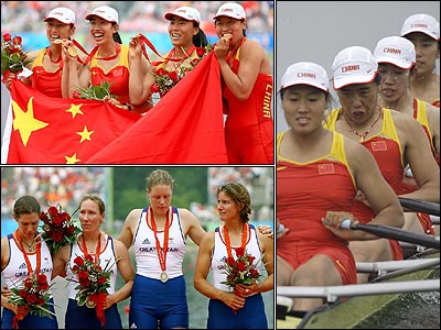 ورزشکاران زن بریتانیا و چین هیچکدام در پاروزنی مدال طلای المپیک را کسب نکرده بوند، اما تفاوت در این بود که بریتانیا امید قهرمانی محسوب می شد. اما قهرمانی چین چهار ورزشکار بریتانیایی را به معدود ورزشکارانی بدل کرد که از گرفتن مدال المپیک خوشحال نشده اند.