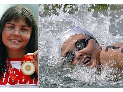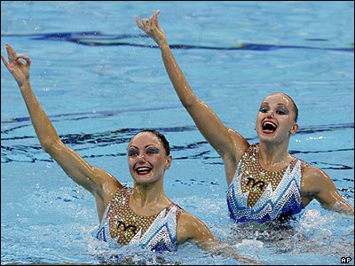 آناستازیا داویدووا و آناستازیا امراکووا، شناگران روس، با موفقیت از مقام قهرمانی خود در المپیک آتن، در شنای هماهنگ دفاع کردند.