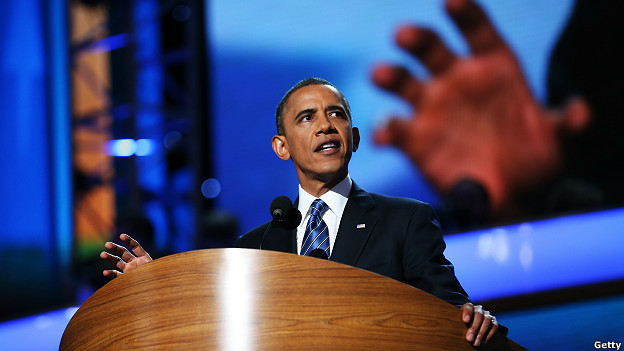 او همچنین ادعا کرد که آقای رامنی و جمهوریخواهان یک سیاست اصلی دارند: "آن چیزی که پیش مینهند همان نسخههایی است که سی سال است در چنته دارند. مازاد داری؟ مالیاتها را کم کن. کلی کسری داری؟ باز هم مالیات را کم کن. داری سرما میخوری؟ مالیات را دو برابر کمتر کن، از یک سری مقررات بزن و فردا صبح ما را صدا کن."
