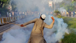 پس از آنکه نیروهای پلیس برای کنترل هزاران نفر از معترضان به گاز اشک آور متوسل شدند، مقام های پاکستان از ارتش درخواست کردند به متفرق کردن معترضان کمک کنند.