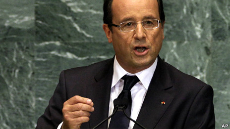 سخنان رئیس جمهور فرانسه در شصت و هفتمین مجمع عمومی سازمان ملل متحد بیان شد که امروز شروع به کار کرد.
