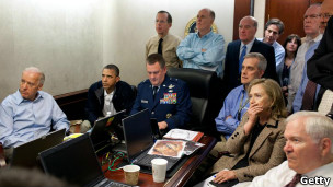 کاخ سفید عکسی را از اتاق کنترل منتشر کرده که در آن آقای اوباما شاهد کشته شدن بنلادن بدست کماندوهای آمریکایی است