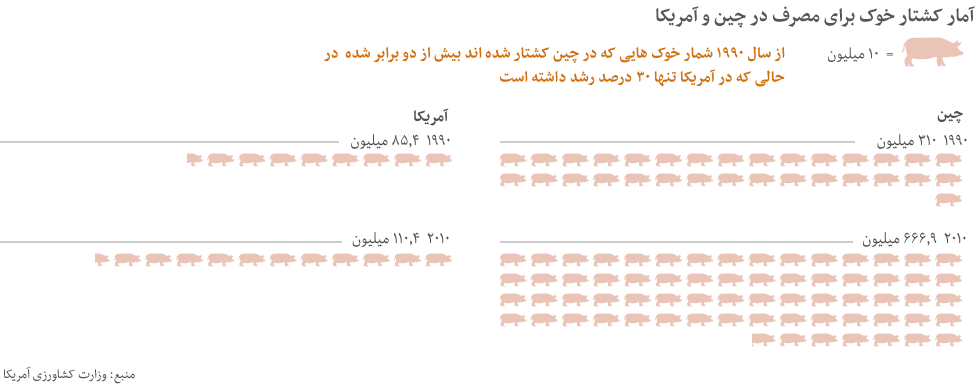 گوشت خوک گوشت مورد علاقه مصرف کننده چینی است اما در گذشته، محدود بودن قدرت خرید مردم اجازه نمی داد به میزان دلخواه از این گوشت مصرف کنند. با افزایش درآمد ها از دهه ۱۹۹۰ میزان خرید گوشت خوک افزایش داشته داشت.