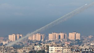 مقامات اسرائیلی همچنین از پرتاب حدود چهارصد فروند موشک از غزه به سوی نقاطی در داخل این کشور خبر داده اند. به گفته آنان، با وجود اینکه سپر دفاع ضد موشکی اسرائیل دهها فروند از این موشک ها را قبل از اصابت به زمین منهدم کرد، تعدادی دیگر از آنها به نقاط مختلف اصابت کرده اند.