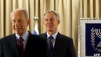 تونی بلر، نماینده گروه چهارجانبه برای صلح خاورمیانه (راست، عقب) در اسرائیل با شیمون پرز، رئیسجمهور اسرائیل (چپ، جلو) دیدار کرده است.