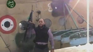 يکی ااز مخالفان دولت سوريه که در ويديويی ادعا می کرد در پايگاه نظامی مرج السلطان ايستاده است