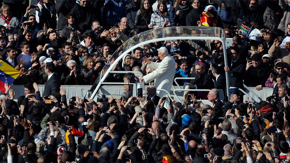• پاپ روز ۱۱ فوریه اعلام کرد که از نظر جسمانی نمی تواند وظایفش را انجام دهد و با میل شخصی از مقامش کناره گیری می‌کند