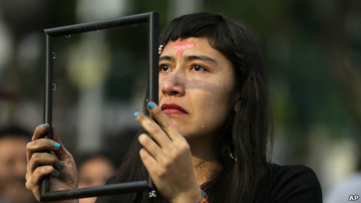 یک زن در مراسم ویژه روز جهانی زن در مکزیک