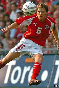 برنامه بازيهای سوئيس در گروه G با فرانسه: 13 ژوئن، 5 بعداز ظهر، اشتوتگارت با توگو: 19 ژوئن، 2 بعد از ظهر، دورتموند با کره جنوبی: 23 ژوئن 8 بعد از ظهر، هانوفر چگونه به آلمان رسيدند: در يک شرايط جنجالی. با ترکيه يک بار مساوی کردند و بار دوم بخاطر گل در زمين حريف آن را شکست دادند. در نتيجه درگيری در پايان مسابقه دوم با ترکيه بنجامين هوگل از شش بازی محروم شد. ستاره تيم در مرحله انتخابی: الکساندر فرای که گل برنده در برابر قبرس را با ضربه سر زد. آنها در گروه نزديکی بودند و اگر اين گل را به ثمر نمی رسيد، آنها به بازی پلی آف نمی رسيدند. سر مربی: ياکوب کان. از سال 2001 مربی اين تيم بوده است و نخستين مربی سوئيسی استدر 12 سال گذشته است که رهبری تيم را برعهده دارد. کاپيتان: يوهان وگل بازيکن 28 ساله و باتجربه آث ميلان در ميانه ميدان وزنه ای است. از سال 1995 تا کنون در بيش از 70 بازی کاپيتان بوده است.