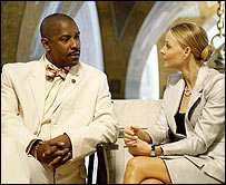 پيچيدگی قصه با پيچيدگی شخصيت های آن می آميزد: هيچ کس يک شخصيت کليشه ای معمولی نيست (جز شخصيت جودی فاستر، که اساساً کمکی به فيلم نمی کند و نقطه ضعف فيلم را رقم می زند). در نقطه نهايی فيلم شخصيت هايش را در يک سطح قرار می دهد: هيچ کس فرقی با ديگری ندارد. لبخند رضايت آميز کارآگاه در صحنه نهايی، از پذيرفتن اين نکته حکايت می کند. آدم ها خاکستری اند؛ با نقاط قوت و ضعف گاه مشترک. استفاده از ماسک ها و لباس های يکرنگ، نوعی تأکيد بر اين تشابه است: همۀ آنها می توانند جای يکديگر قرار بگيرند. سارقان يکی از همين مردم عادی هستنند: به شکل آدم های معمولی وارد بانک می شوند، کارشان را انجام می دهند و به شکل همان آدم های معمولی بانک را ترک می کنند. حتی برای کارآگاه پليس دل می سوزانند و با تکه الماسی زندگی او را تغيير می دهند تا بالاخره بتواند با دوست دخترش زندگی ای را تشکيل دهد. همه چيز خوب و مرتب پيش می رود. همه راضی اند و هوا عالی است. فيلم با شروع يک عشقبازی تمام می شود. مشخصات فيلم: Inside Man کارگردان: اسپايک لی |