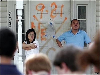 علامتهایی که جستجوگران بعد از توفان کاترینا روی در خانه ها رسم کرده بودند، هنوز روی بسیاری از درها وجود دارد.