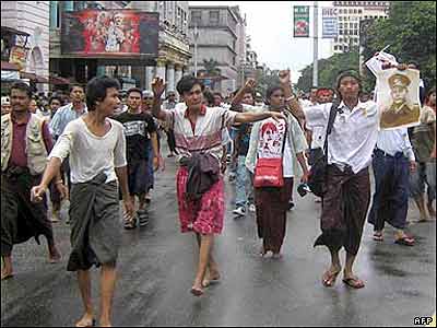 به نظر می رسد تعداد راهبان بودایی که در تظاهرات شرکت می کنند کم شده و به تعداد مردم عادی افزوده شده است. صدها راهب بودایی در حمله های شبانه نیروهای امنیتی دستگیر شدند.