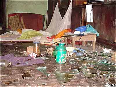 سربازان برمه ای با استفاده از سیم خاردار موانعی در اطراف نقاط مهم شهر از جمله ساختمان شهرداری ایجاد کرده بودند.
