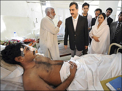 عیادت یوسف رضا گیلانی، نخست وزیر پاکستان، از مجروحان حادثه