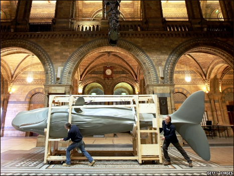 A maquete de baleia cachalote de 7 metros é uma das atrações da exposição; restos do animal podem alimentar seres das profundezas por até 50 anos. (Copyright: Getty Images)