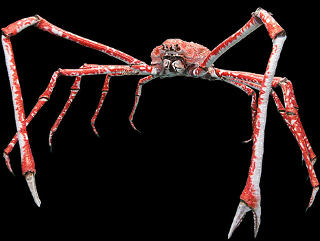 O caranguejo-aranha gigante (Macrocheira kaempferi) é considerado o maior artrópode conhecido, chegando a atingir um tamanho, com as patas esticadas, de quatro metros e 20 kg. (Copyright: Creative Commons)