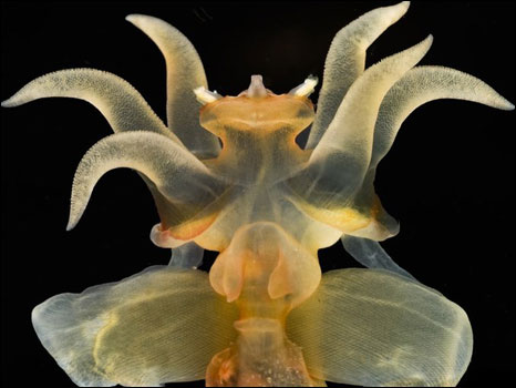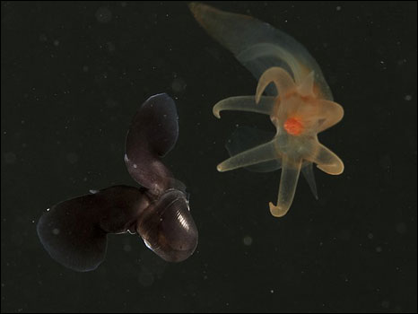 As fotos das minúsculas criaturas, que medem entre 5 e 8 milímetros, foram capturadas por câmeras submarinas especiais no Mar Branco, na Rússia.