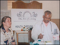 "Crianças nas escolas começam a chorar quando ouvem explosões. Elas têm pesadelos", diz o médico. A fundação afirma ter quatro milhões de adeptos em todo o mundo e alega que 12 dos principais médicos no Iraque já adotaram as suas técnicas. Obstáculos No entanto, a equipe também vem encontrando dificuldades no Iraque. "Não é fácil trabalhar com helicópteros barulhentos sobrevoando o nosso escritório dia e noite, e explosões dia sim, dia não", diz Kumar sobre as condições de trabalho no quartel-general da fundação, em Bagdá. Em fevereiro mais 15 voluntários devem chegar ao Iraque para expandir as operações do grupo e abrir mais centros. A fundação já atuou em áreas em situação de crise humanitária como na Macedônia, em Kosovo, na Croácia, em Gujarat e em Nova York, depois dos atentados de 11 de setembro de 2001. O grupo foi criado em 1982 por Sri Sri Ravi Shankar, um líder religioso de Bangalore e é o maior do gênero no mundo. Para grande parte das classes mais abastadas da Índia, Ravi Shankar, de 48 anos, se transformou em um símbolo espiritual. |