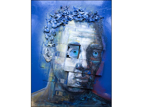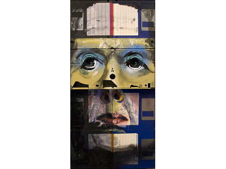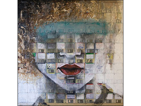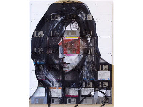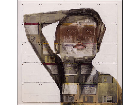 Em suas telas, Gentry usa esses objetos para construir faces imaginárias e identidades que podem ter ligação com informações pessoais armazenadas nos disquetes.