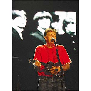 ![]() | Acesso total Paul McCartney passou dois anos fazendo uma turnê mundial que foi registrada em fotos por Bill Bernstein. O fotógrafo teve total acesso ao ex-Beatle e sua banda em uma série de shows que os levou à Rússia, aos Estados Unidos e à França, além da Grã-Bretanha. A turnê terminou em Glastonbury, na Inglaterra, em junho de 2004. Nesta imagem, ele toca em East Rutherford, nos Estados Unidos. (Fotos: Bill Bernstein) | ||