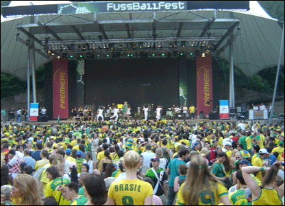 Uma das frases mais lidas em Berlim, principalmente em frente ao hotel onde estava hospedada a seleção brasileira, como nas proximidades do estádio: "Preciso de ingressos", em inglês, alemão e português, para o maior número de potenciais vendedores entender. Os preços variavam entre 1.000 e 250 euros. O mais barato era só para os mais pacientes: esperaram até 15 minutos antes do jogo para negociar com desesperados que não tinham conseguido vender os bilhetes por mais do que isso. Mas a maioria dos que procuraram acabou mesmo do lado de fora do estádio. Foram todos para a Waldbühne, um teatro no meio de um parque, bem próximo ao Olympia Stadion, onde a cantora Ivete Sangalo consolou o "movimento dos sem-ingressos".