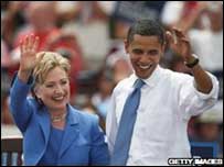 Mas, para mim, o sintoma mais evidente foi outro. Em um evento de campanha de Hillary no final de semana, na cidade de Grafton, na Virgínia Ocidental, nenhum dos célebres âncoras da televisão americana deu o ar de sua graça. A única celebridade presente era uma que a campanha de Hillary provavelmente preferia que não estivesse por lá. O entrevistador "de mentirinha" Jason Jones, do humorístico Daily Show. No esquete gravado por Jason, uma jornalista local entrevistava um potencial eleitor, ele chegava por trás, colocava seu paletó sobre os ombros da moça e dizia: "Querida, vamos embora. Tudo acabou". Um empate com sabor de derrota Barack Obama e Hillary Clinton saíram cada um com uma vitória das primárias de Indiana e Carolina do Norte. Mas a impressão de que o desfecho foi um mero empate entre os dois candidatos é enganosa. Hillary precisava vencer por ampla margem em Indiana, para seguir com chances na disputa. Ter chegado à frente do rival por 2% foi mais que um resultado decepcionante.