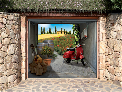Uma empresa alemã criou um produto que tem o objetivo de quebrar a monotonia das portas de garagem: coberturas com imagens variadas que criam ilusões de ótica em três dimensões.
