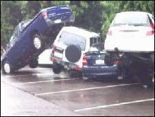 A correnteza então ficou tão forte que levou veículos estacionados.