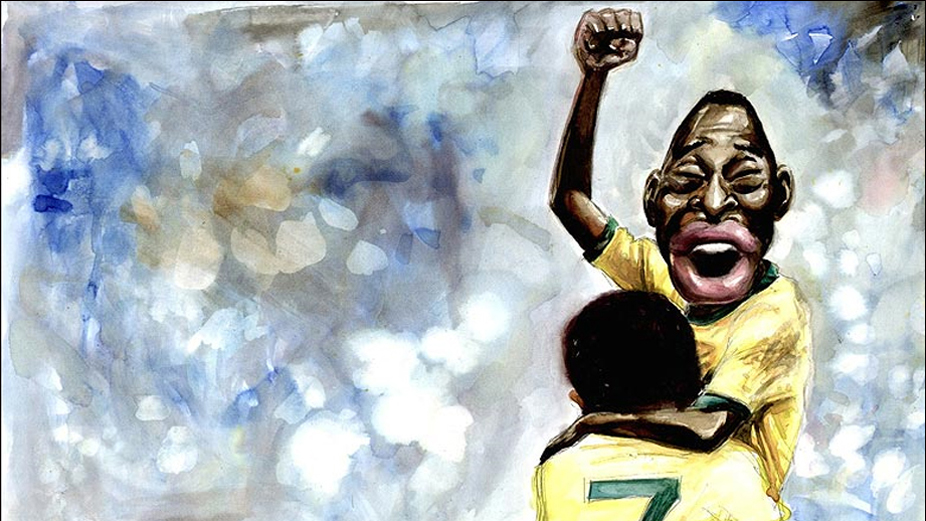 Pelé abraça Jairzinho no México em 1970. Amigos me dizem que, vendo o livro agora, se lembram de quando eu desenhava no colégio os jogos do Boca Juniors, meu time, nas segundas-feiras após as partidas do final de semana, afirma o autor.