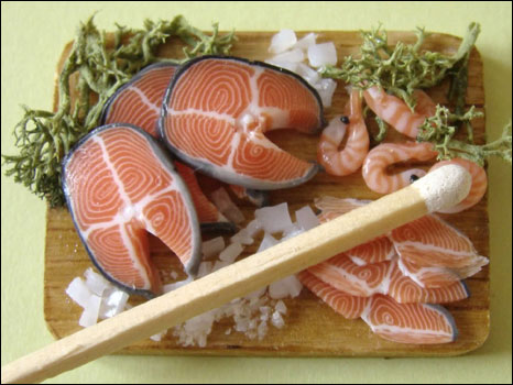 As miniaturas são 12 vezes menores do que o tamanho original e a artista estima que nos últimos três anos ela tenha produzido cerca de 600 itens entre bolos, carnes, refeições e doces.