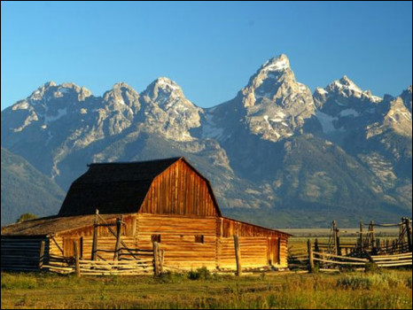 É uma foto tirada de manhã bem cedo e mostra um antigo celeiro mórmon com as montanhas Teton ao fundo. Ela foi tirada durante uma viagem de camping nessa área, disse o engenheiro de 62 anos.