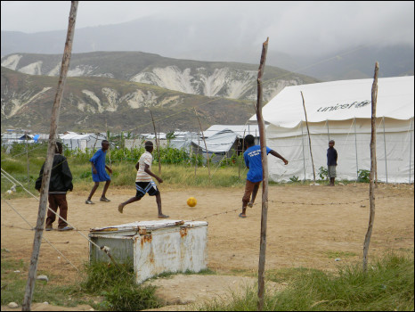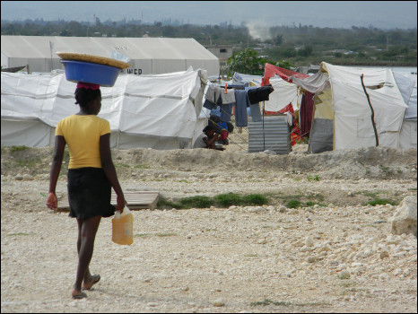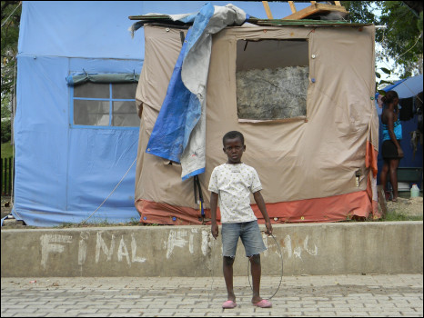 As ruas da capital, Porto Príncipe, estão tomadas por barracas, onde os sobreviventes do terremoto tentam reconstruir suas vidas enquanto esperam ajuda.