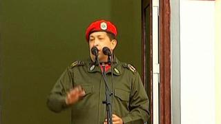 O presidente apareceu na varanda do palácio presidencial em Caracas vestido em um traje militar verde e acompanhado de duas de suas filhas. O discurso teve tom efusivo e durou pouco mais de 30 minutos.
