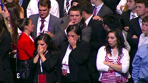 Em Boston, republicanos choram após Romney admitir derrota.