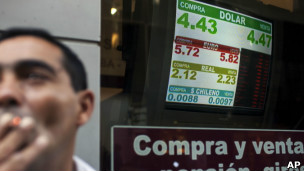 Casa de câmbio em Buenos Aires; governo dificultou compra de dólares