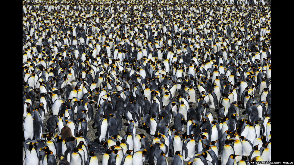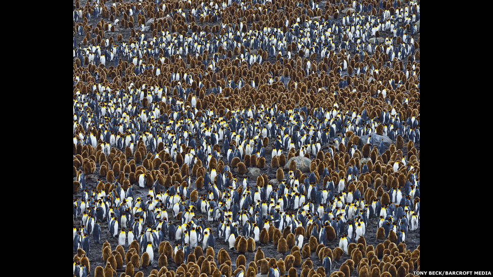 O fotógrafo canadense Tony Beck fez uma série de fotos de pinguins durante uma viagem à Ilha Georgia do Sul, próxima às Ilhas Malvinas/Falklands, no Atlântico Sul. Entre as imagens flagradas está esta formação de pinguins-reis que lembra a letra Z.
