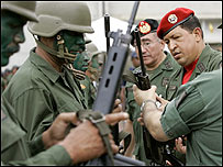 A Venezuela deslocará cerca de 6 mil soldados para a fronteira com a Colômbia, para tentar combater grupos subversivos colombianos e de narcotráfico na região. O anúncio foi feito neste sábado pelo chefe do Comando Unificado das Forças Armadas Nacionais, general Wilfredo Silva. Além do envio de soldados para o Estado de Apure, no sudoeste do país, tembém serão criadas brigadas nas cidades de Mantecal e Sucre, para aumentar a vigilância. As medidas são parte de um plano que também prevê a compra de aviões, helicópteros e radares, assim como a construção de três pistas de aterrissagem, de acordo com nota oficial. Há três dias, o presidente da Venezuela, Hugo Chávez, disse que pretende comprar 24 aviões de caça da Rússia e aumentar a encomenda de helicópteros russos de transporte e combate. Dez unidades já foram pedidas. Silva disse que colocará em funcionamento um radar para detectar a entrada irregular de aviões no espaço aéreo de Apure. Na semana passada, os chanceleres da Venezuela e da Colômbia, reunidos em Caracas, disseram que a colaboração de ambos os países é a maneira mais eficaz de combater o narcotráfico e a criminalidade na fronteira comum. | NOTÍCIAS RELACIONADAS Colômbia pede mais ajuda dos EUA no combate ao tráfico15 de junho, 2006 | Notícias Rússia negocia fabricação de rifles na Venezuela31 de maio, 2006 | Notícias Game que simula invasão gera alvoroço na Venezuela25 de maio, 2006 | Notícias Venezuela adere ao Mercosul24 de maio, 2006 | Notícias | ||||||||||||||||||||||||||||||||||||||||||||||||||||||||||||||||||||||||||||||||||||||||||||||||||||||||||||||||