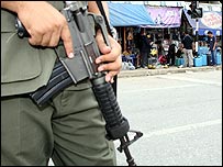 As autoridades da Tailândia afirmaram que pelo menos duas pessoas morreram em uma seqüência de explosões causadas por bombas acionadas por controle remoto na cidade de Hat Yai, no sul do país. Os explosivos teriam sido plantados em motocicletas e detonados por telefones celulares às 21h15m do horário local, atingindo duas lojas de departamentos e em um hotel, de acordo com a imprensa local. Várias pessoas teriam sido feridas nos atentados. Imagens da televisão local mostram dezenas de pessoas cobertas de sangue saindo de bares e restaurantes da cidade. Duas delas estavam em lojas de departamento e uma terceira próxima a um hotel. "Acreditamos que os insurgentes sejam os responsáveis pelos ataques", disse um porta-voz militar da Tailândia. "A intenção deles é espalhar o medo pela região." A televisão da Tailândia também mostrou imagens das lojas de departamentos Odean e Big C em chamas. A polícia isolou a área atingida e bloqueou os sinais de celulares para evitar outros possíveis atentados. Mais de 1,3 mil pessoas morreram na Tailândia desde o início de uma insurgência muçulmana no sul da Tailândia, em 2004. A minoria muçulmana da região se queixa de discriminação pela maioria budista. As explosões deste sábado aconteceram horas depois depois de uma manifestação por paz organizada pelo Exército tailandês que reuniu mais de mil muçulmanos na cidade de Yala. | NOTÍCIAS RELACIONADAS Bomba explode na porta da casa de assessor de rei taiândês09 de março, 2006 | Notícias | ||||||||||||||||||||||||||||||||||||||||||||||||||||||||||||||||||||||||||||||||||||||||||||||||||||||||||||||||