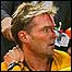 O atacante França venceu o duelo com Ronaldo nesta quarta-feira, ajudando a selar a sorte do Real Madrid na goleada de 3 a 0 aplicada pelo Bayer Leverkusen na Liga dos Campeões. França marcou o segundo gol do Bayer, aos 5 minutos do segundo tempo. Os outros gols foram marcados por Krzynówek, no primeiro tempo, e Berbatov. A zaga brasileira do Bayer, formada por Juan e Roque Júnior - que já atuaram com Ronaldo na Seleção Brasileira - conseguiu anular Ronaldo. A melhor jogada o atacante do Real Madrid foi quando ele acertou a bola no travessão do gol alemão aos 25 minutos do primeiro tempo. Estréia morna Rivaldo, em sua estréia pelo time grego Olympiakos, não conseguiu derrotar o espanhol Deportivo La Coruña, pelo qual já atuou. Rivaldo, porém, ofereceu perigo ao gol adversário em pelo menos duas ocasiões no primeiro tempo. O atacante teve uma boa chance de gol logo ao cinco minutos. Dez minutos depois, um chute de longe do atacante passou perto da trave adversária. O Olympiakos desperdiçou a chance de abrir o marcador quando o goleiro José Molina, do La Coruña, não conseguiu agarrar uma cobrança de falta de Rivaldo. Na seqüência, Gabriel Schurrer chutou longe do gol espanhol. Violência Na Itália, a partida entra Roma e Dynamo Kiev foi interrompida no final do primeiro tempo, quando o juiz Anders Frisk foi atingido por um objeto jogado pela torcida. Antes, ele havia expulsado o zagueiro Philippe Mexes, da Roma, que chegou ao intervalo perdendo por um a zero. Outro brasileiro que marcou na rodada foi Juan, do Lyon. O lance do jogador, depois de cobrança de falta de Juninho Pernambucano, garantiu o empate da equipe francesa com o Manchester United: 2 a 2. Resultados da rodada Liverpool 2 x 0 Monaco |