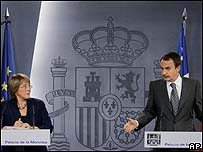 A presidente do Chile, Michelle Bachelet, pediu, durante visita a Madri, que não "haja guerra fria na América do Sul" em referência às recentes divergências entre os governos da região, depois da posse de Evo Morales na Bolívia e da aliança formada entre ele e o presidente venezuelano, Hugo Chávez. Bachelet, em sua primeira visita oficial à Espanha, disse que "não gostaria que a América do Sul voltasse a uma etapa do passado. Não acho bom demonizar nenhum país, porque cada um tem sua legislação, seus pontos de vista e suas necessidades”, evitando citar nomes. A governante socialista que conversou na quarta-feira com a imprensa ao lado do primeiro-ministro espanhol, José Luis Rodríguez Zapatero, disse que a solução para a região é resolver os problemas sociais e fortalecer a democracia. "Há nações na América Latina que ainda vivem em condições inaceitáveis, com democracias que não estão consolidadas. Temos que ser respeitosos com a soberania de cada país", disse Bachelet. Gás da Bolívia Quanto à nacionalização do gás boliviano, Bachelet disse que a solução já foi discutida entre todos os chefes de Estado, mas falta fechar os acordos. "Temos enormes reservas de energia de todos os tipos na América do Sul. Se formos capazes de avançar na criação de um anel energético, com o projeto de infra-estrutura global, vamos resolver esse impasse", completou. "O que nos falta na América Latina, no Cone Sul, é entender a diversidade, encontrar desejos comuns e aproveitar as possibilidades da globalização. Um exemplo desse trabalho em comum é o caso do Haiti. Estivemos todos unidos no processo de desenvolvimento do país mais pobre do continente, afirmou Bachelet. O primeiro-ministro Zapatero elogiou o Chile, que considera um "país moderno, sério e aberto" e um exemplo para a América Latina. O Chile é um dos quatro países em todo mundo, ao lado da Espanha, que tem a igualdade de gênero no primeiro escalão e 50% dos ministros são mulheres. Boa imagem Bachelet definiu a boa imagem do Chile no exterior, dizendo que o país é "pequeno, mas respeitado por sua política séria e responsável nos setores social e econômico". A presidente chilena confirmou que terá um encontro com o presidente da Venezuela, Hugo Chávez, durante a Cúpula de Viena, mas não quis adiantar o teor da reunião. Já o primeiro-ministro Zapatero terá uma reunião com o presidente brasileiro no encontro de cúpula para discutir a situação da Petrobras e da Repsol na Bolívia, embora por enquanto não haja uma postura comum nessa crise. "Estamos trabalhando desde o primeiro momento em que soubemos do decreto de nacionalização (dos hidrocarbonetos na Bolívia). Mandamos uma comissão para estabelecer um clima de negociação e isso tem seu tempo. É lógico que a Espanha vai defender os direitos das empresas espanholas, mas sempre defendendo o diálogo antes de mais nada. Essa política vale para todos os países e mais ainda sendo um país amigo como a Bolivia." | NOTÍCIAS RELACIONADAS Gasto com armas na América do Sul preocupa europeus10 maio, 2006 | BBC Report Bachelet discute democracia e pobreza no Brasil11 abril, 2006 | BBC Report Morales rouba a cena na véspera da posse de Bachelet11 março, 2006 | BBC Report Lula acompanha posse histórica de Bachelet11 março, 2006 | BBC Report Chile tem a primeira mulher na Presidência11 de março, 2006 | Notícias LINKS EXTERNOS A BBC não se responsabiliza pelo conteúdo dos links externos indicados. | |||||||||||||||||||||||||||||||||||||||||||||||||||||||||||||||||||||||||||||||||||||||||||||||||||||||||||||