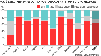 Quase 80% dos jovens de dez metrópoles mundiais acham que deveriam ter o direito de viver em qualquer país que desejassem, segundo a pesquisa Geração do Futuro, encomendada pela BBC. Este dado, de que quatro em cada cinco jovens querem ter o livre direito de mudar de país, é uma das conclusões de uma pesquisa feita com cerca de 3000 adolescentes entre 15 e 17 anos nas cidades do Rio de Janeiro, Nova York (EUA), Londres (Grã-Bretanha), Moscou (Rússia), Jacarta (Indonésia), Lagos (Nigéria), Cairo (Egito), Bagdá (Iraque), Nova Déli (Índia) e Nairóbi (Quênia) sobre vários assuntos relacionados à situação em que vivem, seus anseios e suas opiniões sobre alguns temas de destaque no noticiário internacional.