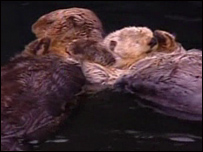 Um casal de lontras que passa várias horas do dia com as patas entrelaçadas em Vancouver, no Canadá, está se tornando a última sensação da internet. Com mais de 1,5 milhão de acessos em duas semanas, o vídeo com as lontras se tornou a imagem com animais mais popular do YouTube. Agora o vídeo está aparecendo em meio milhão de outros websites. Os animais - Nyack e Milo - vivem no Aquário de Vancouver, onde deixam os visitantes enternecidos. "Eu acho que eles parecem dois ursinhos de pelúcia nadando", disse uma mulher. Mas o que parece ser uma demonstração de amor, na verdade é uma questão de sobrevivência. "Na natureza, se o mar está de ressaca, eles podem se separar um do outro, e ter um grupo social para as lontras do mar é muito importante", afirmou Brian Sheehan, do Aquário de Vancouver. Sobrevivente O vídeo que fez de Nyac e Milo um sucesso na internet foi feito por um estudante no Canadá há cinco anos. Só recentemente é que ele o disponibilizou na rede mundial de computadores. Nyac, na verdade, já era famosa. Em abril de 1989, ela foi uma das poucas lontras marinhas que sobreviveram ao vazamento ocorrido no petroleiro Exxon Valdez, no Alasca. Nyac foi limpa e enviada para Vancouver, onde vive desde então. O aquário espera que a publicidade em torno das lontras sirva para alertar as pessoas de que esta é uma espécie ameaçada. |