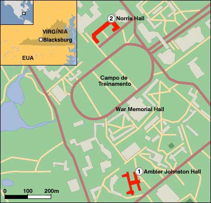 O atirador que matou pelo menos 30 pessoas na Universidade Virginia Tech, nos Estados Unidos, foi identificado pela polícia nesta terça-feira como um estudante de origem sul-coreana, de 23 anos, chamado Cho Seung-Hui. Ele estudava inglês e morava no campus. De acordo com a polícia, Cho se suicidou depois de disparar dezenas de tiros na universidade. A polícia confirmou que uma das armas encontradas no local onde o estudante sul-coreano matou 30 pessoas também foi utilizada no ataque realizado mais cedo, quando duas pessoas foram mortas. "Um revólver calibre 9 mm e outro calibre 22mm foram encontrados no Norris Hall (o local do segundo ataque). Testes de balística confirmaram que uma das armas foi usada nos dois ataques", disse Wendell Flinchum, chefe da polícia da universidade. De acordo com o superintendente da polícia do Estado da Virgínia, Steve Flaherty, é provável que o atirador tenha agido sozinho nos dois ataques realizados no campus, já que não há indícios de que tenha havido um cúmplice, mas a investigação ainda não foi concluída. Ainda segundo a polícia, os corpos das 30 vítimas do segundo ataque foram encontrados em quatro salas de aula diferentes e nas escadas do prédio da universidade. O corpo do atirador, que se matou, também foi encontrado no local. O primeiro ataque, realizado cerca de duas horas antes, ocorreu em outras dependências da mesma universidade. Relatos Sobreviventes do ataque afirmaram que o atirador andou calmamente pela universidade e chegou a trancar portas para evitar que outros estudantes fugissem do local. Alguns estudantes e pais criticaram as autoridades por demorar demais para dar o alerta de que um homem armado estava à solta. A polícia afirma que pensou que o primeiro incidente havia sido isolado, um problema doméstico, e que o atirador tinha saído do campus. Representantes da universidade defenderam a decisão de não evacuar o campus, dizendo que não podiam prever o segundo incidente. "Não tínhamos razão para suspeitar que outro incidente fosse ocorrer. Apenas podemos tomar decisões com base em informações que tínhamos naquele momento. Você não tem horas para refletir sobre isso", disse Charles Steger, reitor da universidade. Os estudantes alegam que foram informados apenas por e-mail, duas horas depois do primeiro tiroteio, e dizem que não foram feitos anúncios no sistema de alto-falante. O presidente dos Estados Unidos, George W. Bush, disse que ficou "chocado e entristecido" com o ataque à universidade da cidade de Blacksburg que tem 26 mil estudantes. Bush e a primeira-dama, Laura Bush, participam de uma missa nesta terça-feira, na universidade em Virgínia, em homenagem às vítimas dos ataques.