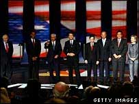 Os oito pré-candidatos democratas à Presidência dos Estados Unidos realizaram nesta quinta-feira o primeiro debate entre eles, cerca de um ano e meio antes da eleição para a Casa Branca. O debate, na Carolina do Sul, permitiu que os candidatos marcassem seus territórios, esclarecendo posições que podem render dividendos antecipados a eles – além de deixar claras divisões dentro do próprio partido. Hillary Clinton, uma das favoritas na disputa pela candidatura democrata, se referiu ao assunto mais difícil, a guerra no Iraque, com a cabeça levantada e sem titubear. "Eu assumo a responsabilidade pelo meu voto", que autorizou o presidente George W. Bush a enviar tropas ao Iraque, disse Hillary. "Se eu soubesse o que sei hoje, nós não teríamos ido à guerra." Ao mesmo tempo, a senadora deixou claro – enviando uma mensagem a todos os americanos – que ela não hesitaria em ordenar uma "resposta militar" se o país fosse atacado. Hillary foi a única candidata no debate a perceber que essa é uma postura política fundamental se os democratas querem provar que podem ser tão duros quanto os republicanos, quando isso for necessário. Biden