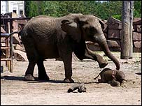 Um dia depois de quase matar seu filhote, uma elefanta do zoológico de Berlim "fez as pazes" com o recém-nascido nesta quinta-feira. Na quarta, a elefanta chamada Pori aparentemente tentou esmagar e depois afogar o filhote, apelidado de Dumbo. Pori recebeu uma dose de sedativos e, segundo funcionários do zoológico, já desenvolveu laços com a cria. O incidente tornou o pequeno elefante o mascote mais popular na Alemanha. Teorias Funcionários do zoológico disseram que o incidente foi uma reação natural da mãe e que ela já havia matado um outro filhote antes. Não é incomum que elefantes em cativeiro matem intencionalmente seus filhos, mas existem apenas especulações sobre por que isso acontece. Uma teoria é que, se o animal estiver confinado em apenas um ambiente de concreto, ele pode não desejar que seu filho sofra o mesmo destino. Outra é que, na natureza, os filhotes de elefantes são cuidados pelas fêmeas do grupo e as mais novas aprendem observando. Em cativeiro, sem auxílio de outras fêmeas, a mãe pode entrar em pânico. |