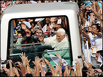 NOTÍCIAS RELACIONADAS Leonardo Boff vai a 'encontro de perseguidos' na Espanha, diz jornal18 maio, 2007 | BBC Report Visita do papa provoca reações mistas em outras religiões17 maio, 2007 | BBC Report Papa mostrou 'fraquezas' no Brasil, diz jornal alemão16 maio, 2007 | BBC Report Crítica a machismo não abre caminho para ordenação de freiras, diz bispo14 maio, 2007 | BBC Report Papa, violência e o metrô de São Paulo na visão de um repórter inglês 13 maio, 2007 | BBC Report Papa ataca machismo na América Latina13 maio, 2007 | BBC Report Marxismo e capitalismo fizeram 'falsas promesas', diz papa13 maio, 2007 | BBC Report Papa diz que viveu 'horas intensas e inesquecíveis'13 maio, 2007 | BBC Report | |||||||||||||||||||||||||||||||||||||||||||||||||||||||||||||||||||||||||||||||||||||||||||||||||||||||||||||